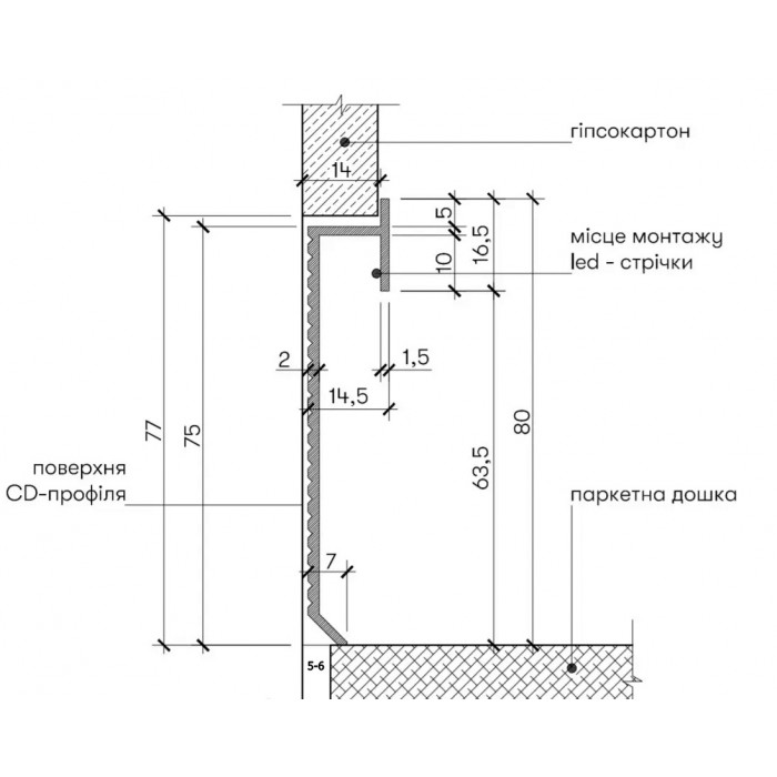 Плінтус алюмінієвий прихованого монтажу для LED підсвічування 80 мм (P-2-80А)