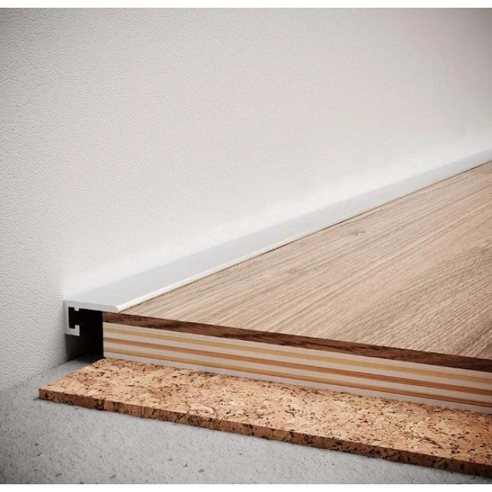 • Міцність. Алюмінієвий плінтус виготовляється з легованого сплаву, який на порядок міцніший за такі матеріали як МДФ, ПВХ, поліуретан та ін. Плінтус з алюмінію буде більш стійкий до появи подряпин та деформацій від ударів у процесі експлуатації. ;